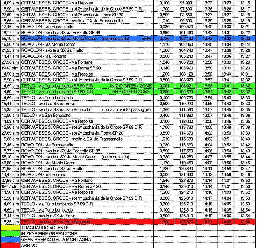 Radio Corsa: RCI Team Radio Corsa Informazioni frequenza 160.025. T.V.: 3° e 6 ° passaggio al km 37,860 e km 79,400 in via San Benedetto Teolo (PD) di fronte all’azienda Polo Spa.