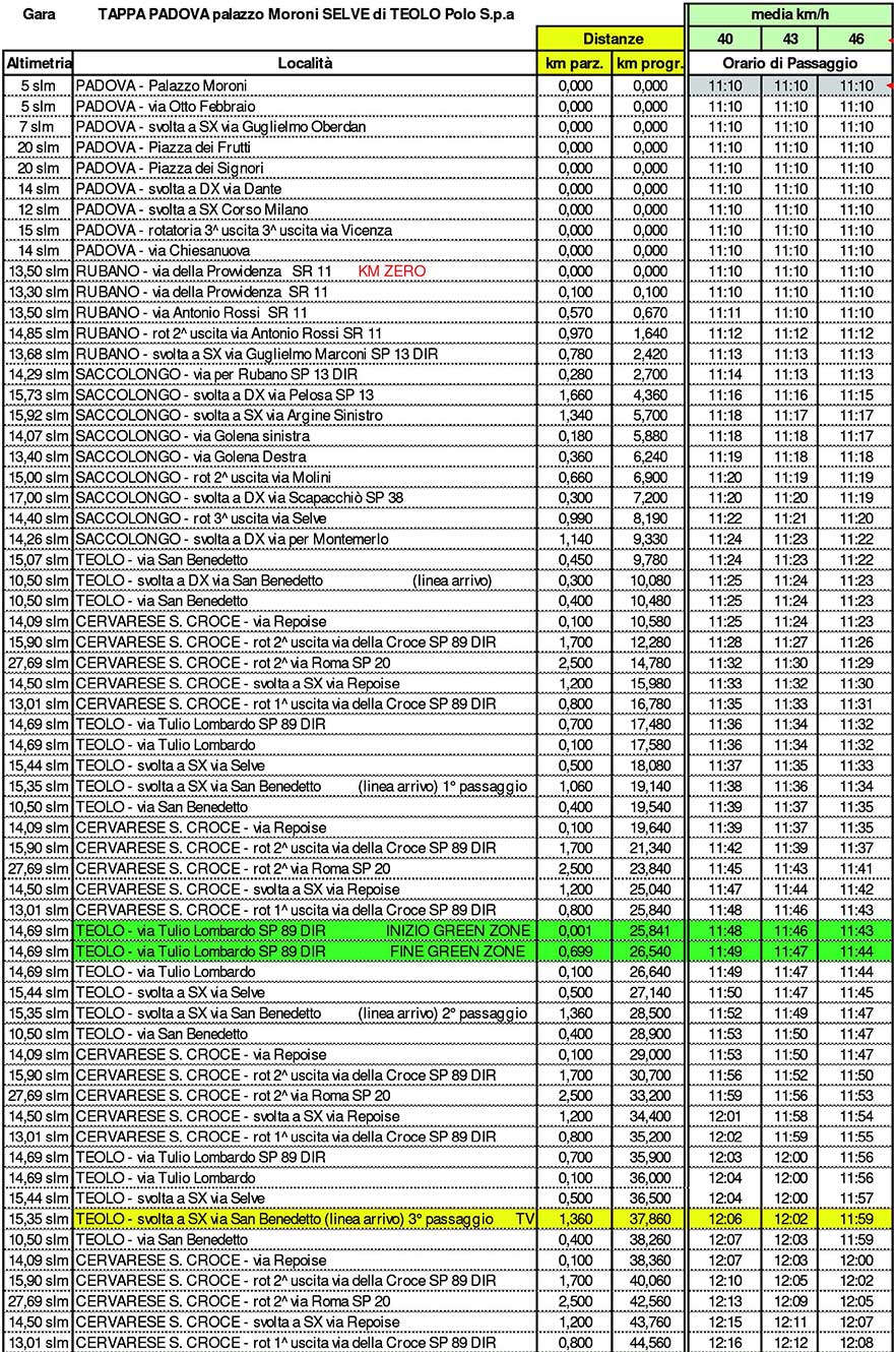Presentazione Team/foglio firma: a partire dalle ore 09:30 via XIII Febbraio (PD) di fronte al Municipio, ordine di presentazione che verrà comunicato durante la riunione tecnica.